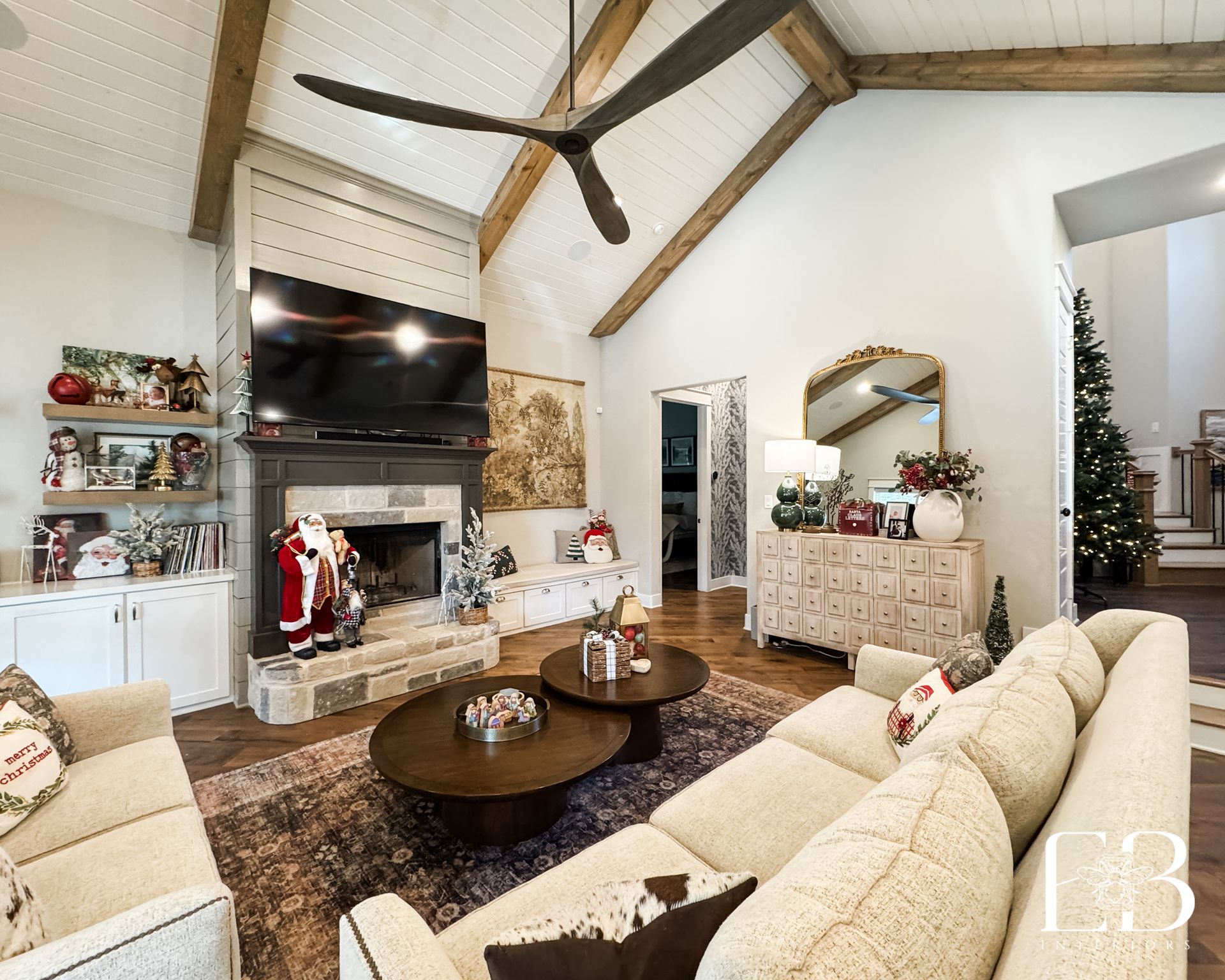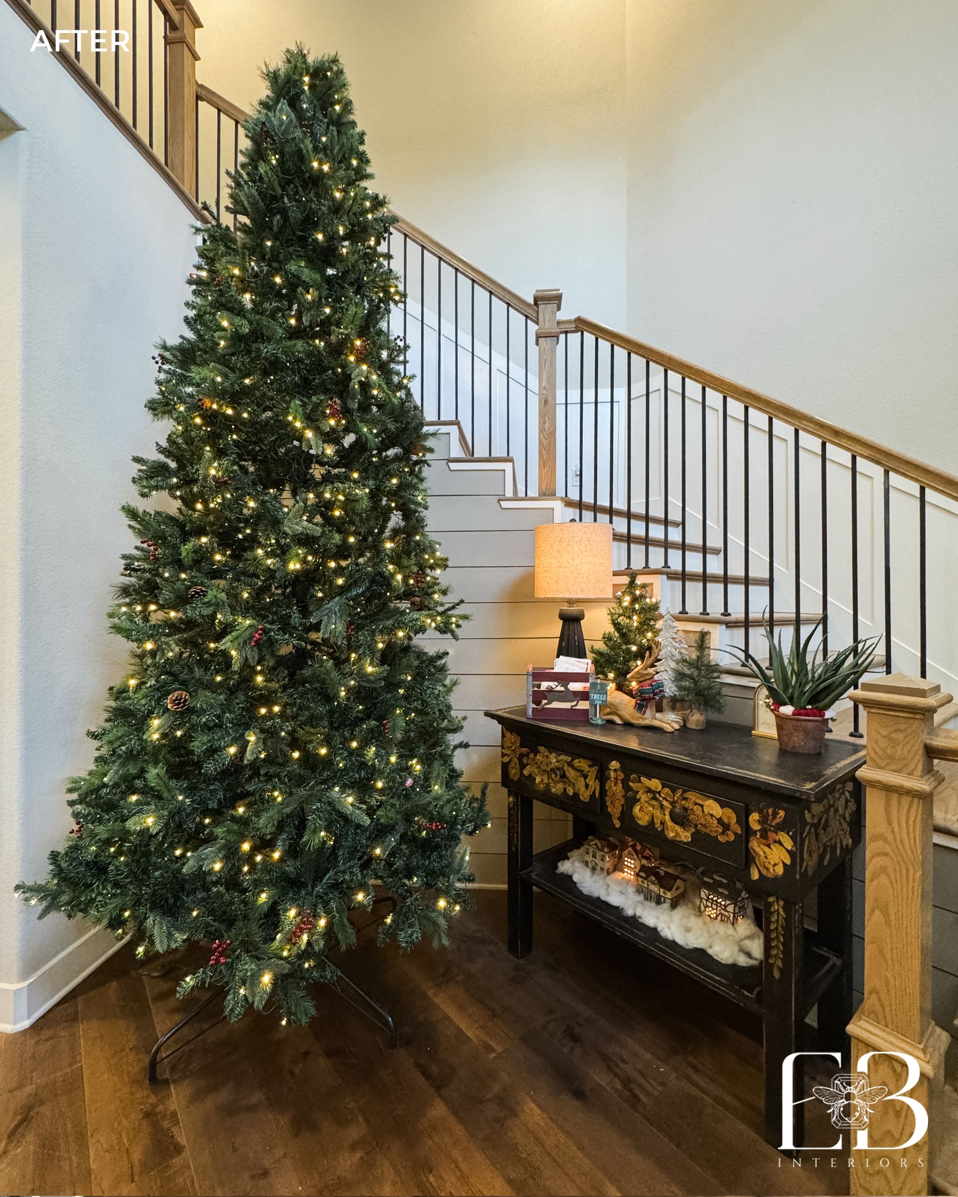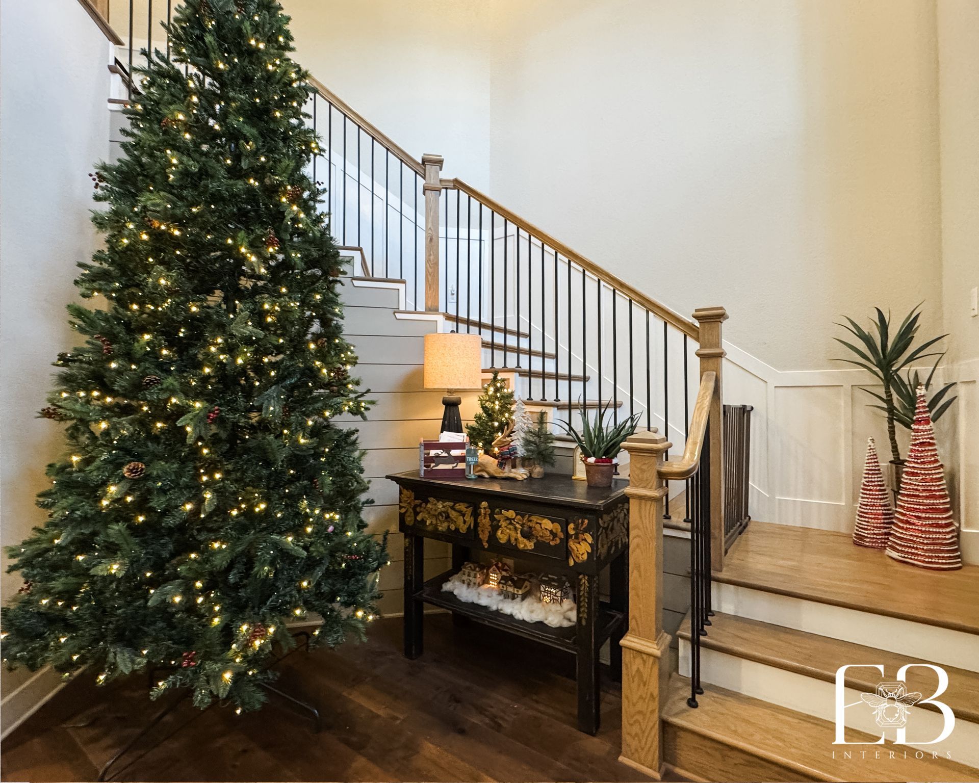 After completing updates to the shared spaces, the client asked Emerald Bee Interiors to style the home for Christmas in a way that complemented the new transitional aesthetic. Using the family’s existing holiday décor, the goal was to create a festive, cohesive layer that felt elevated rather than overwhelming.