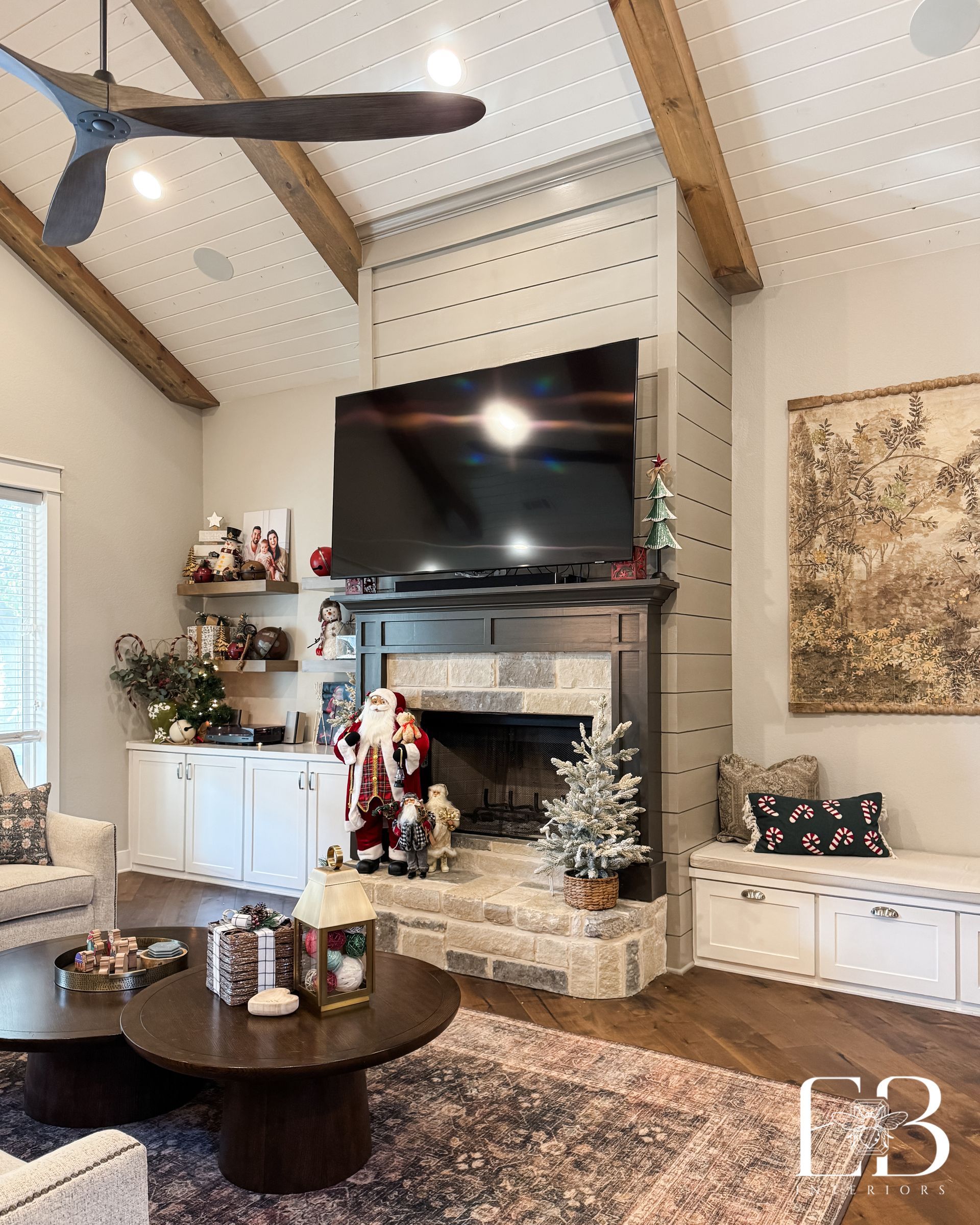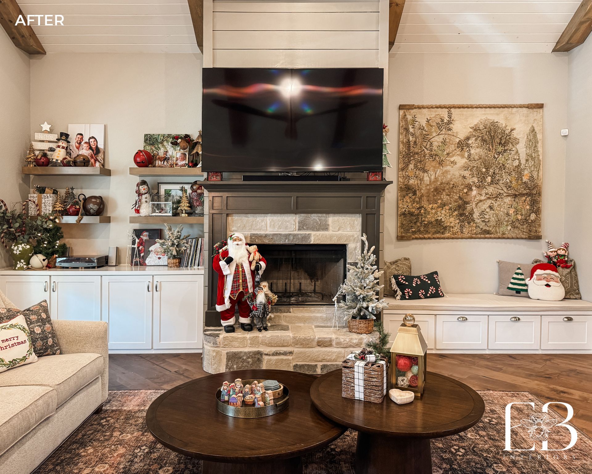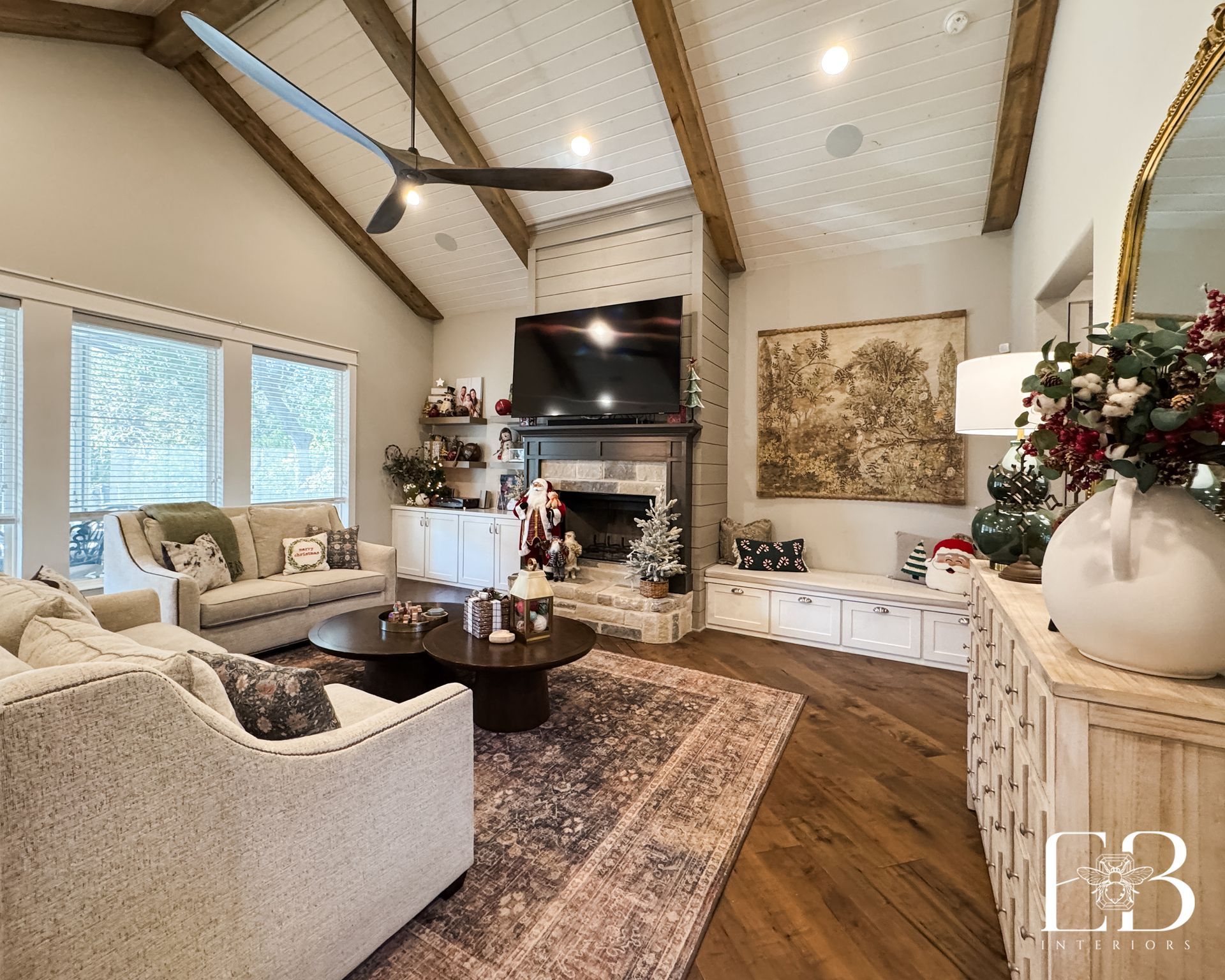 After completing updates to the shared spaces, the client asked Emerald Bee Interiors to style the home for Christmas in a way that complemented the new transitional aesthetic. Using the family’s existing holiday décor, the goal was to create a festive, cohesive layer that felt elevated rather than overwhelming.