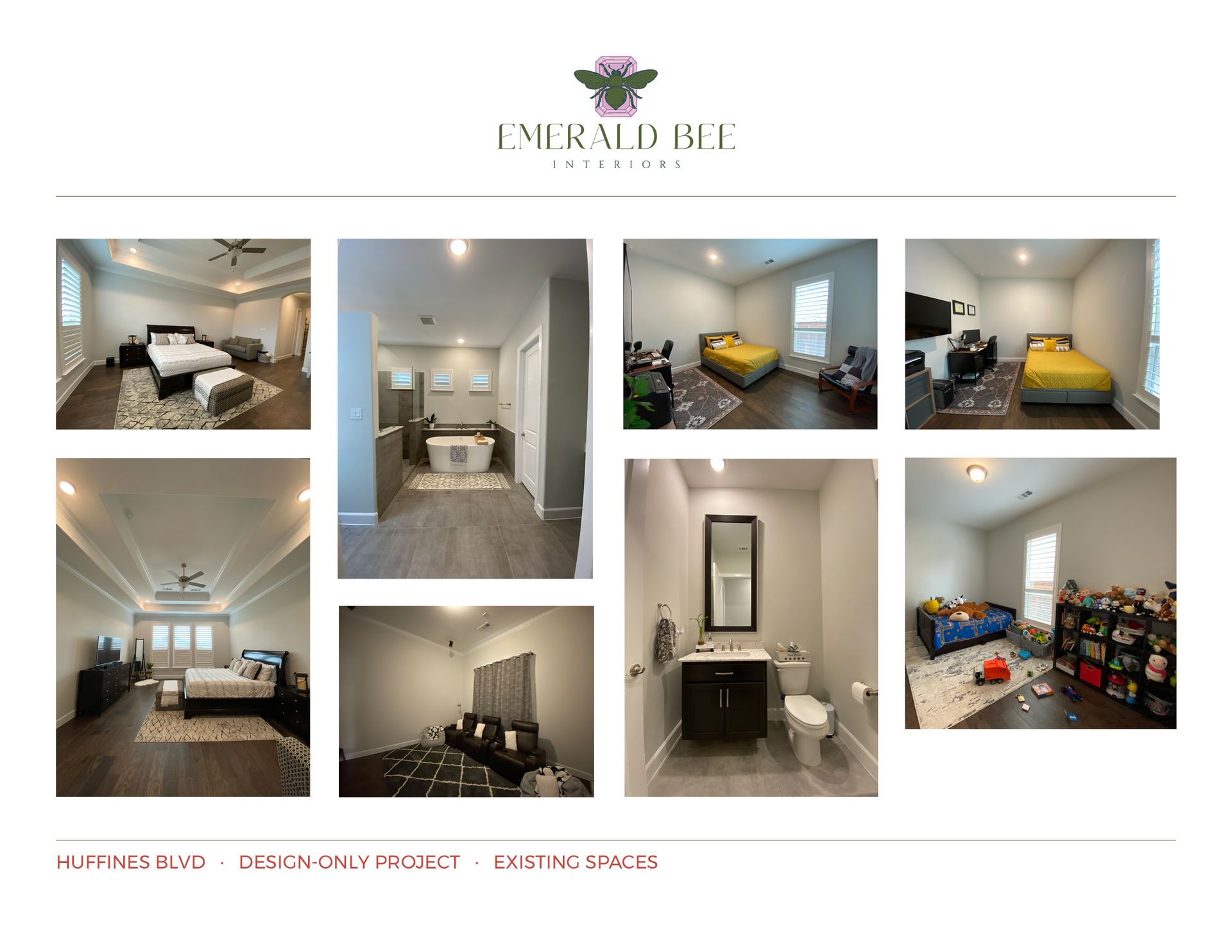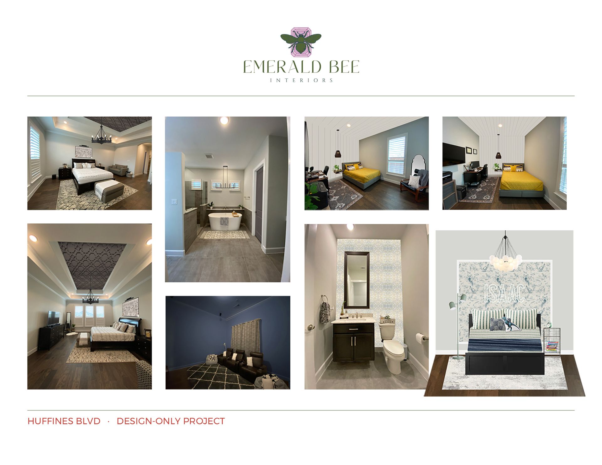 Emerald Bee Interiors was engaged to enhance a newly built home while complementing existing furnishings and paint finishes. The client desired a cohesive update emphasizing accent walls, refined lighting, and subtle tonal shifts across key spaces—all while maintaining the inviting, relaxed character of a farmhouse aesthetic.