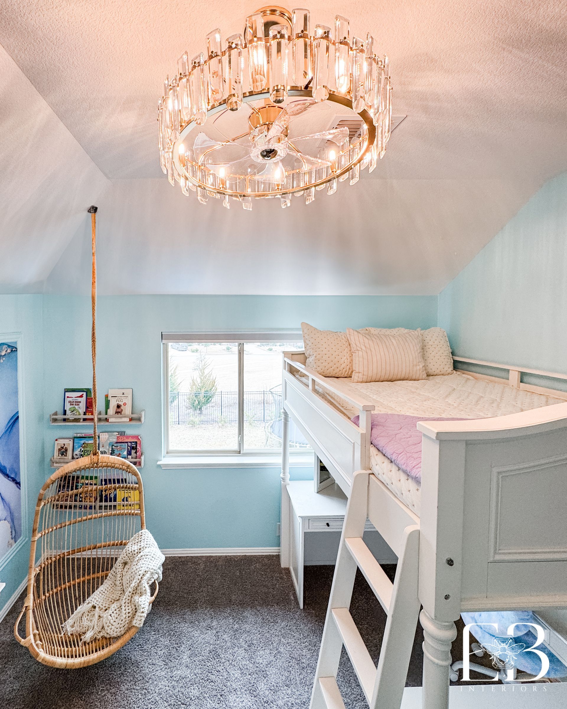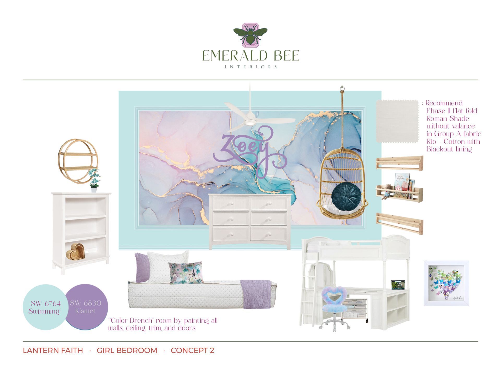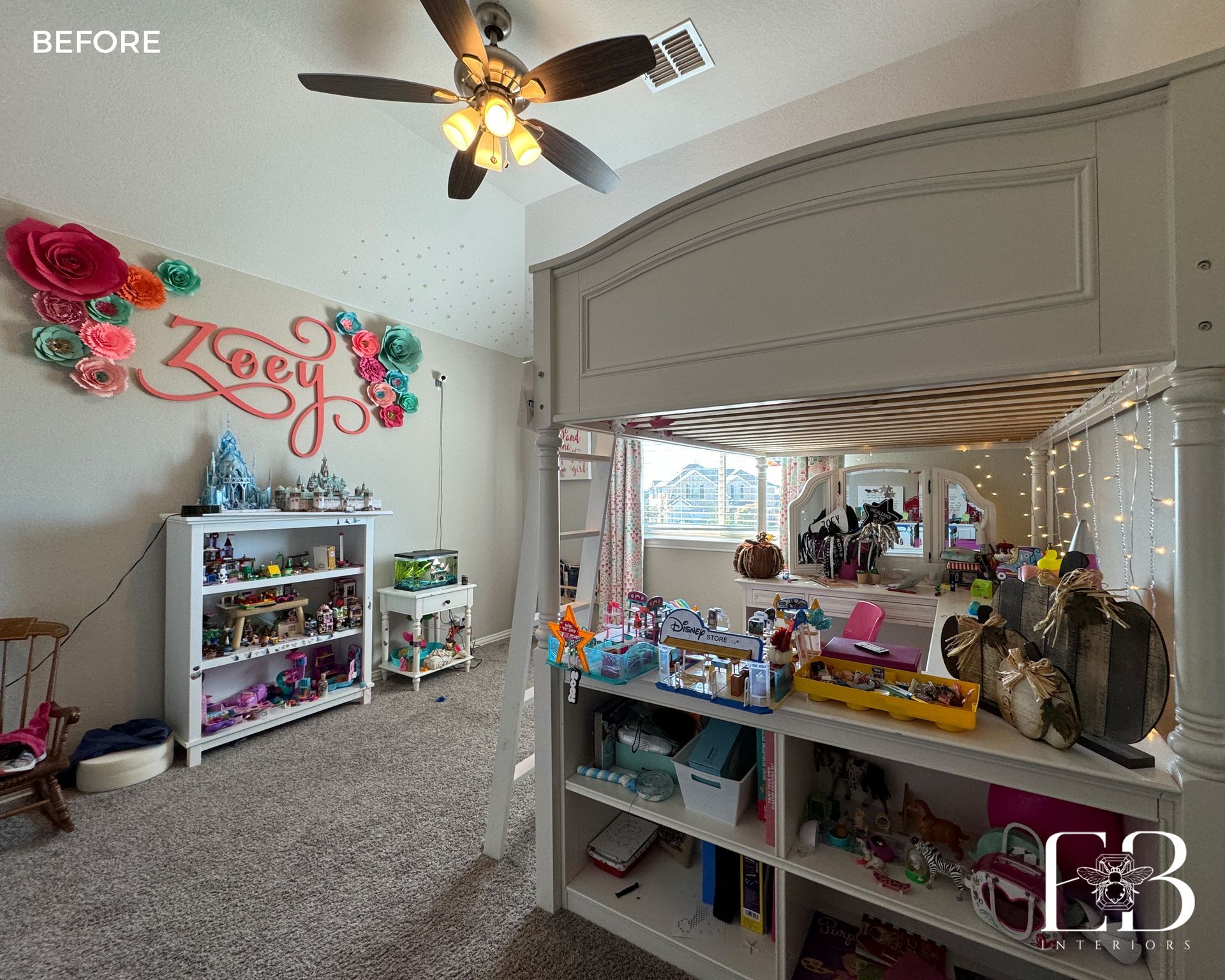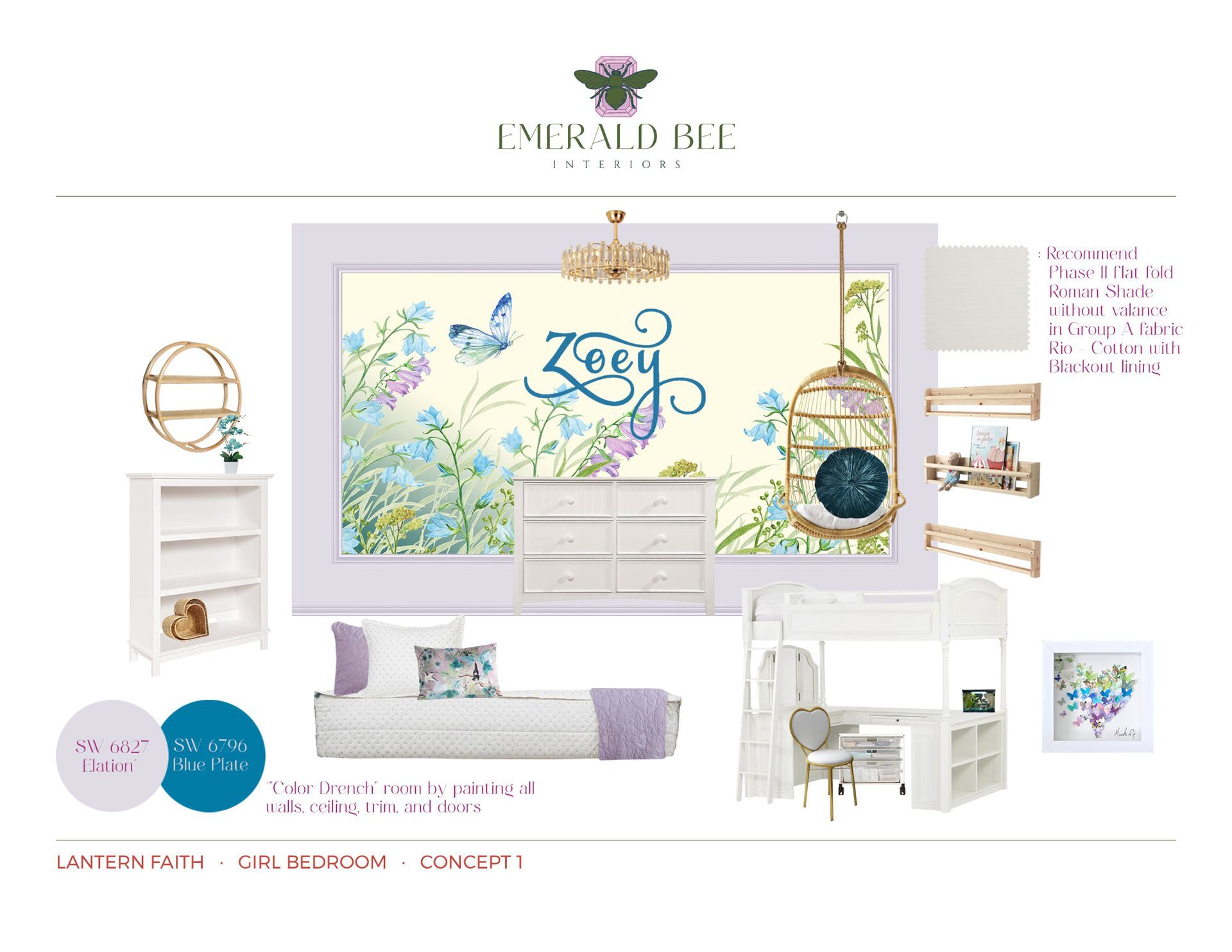 This design-only project for the Lantern Faith Residence centered on creating three distinct yet cohesive spaces—a daughter’s bedroom, a son’s bedroom, and a shared game room—all completed on a tight pre-holiday timeline. The children’s rooms were designed as a surprise Christmas gift, requiring efficient design decisions and thoughtful planning to achieve maximum impact within a limited window and budget. Emerald Bee Interiors later had the opportunity to return and professionally photograph the completed bedrooms, capturing how the designs translated from concept to reality.