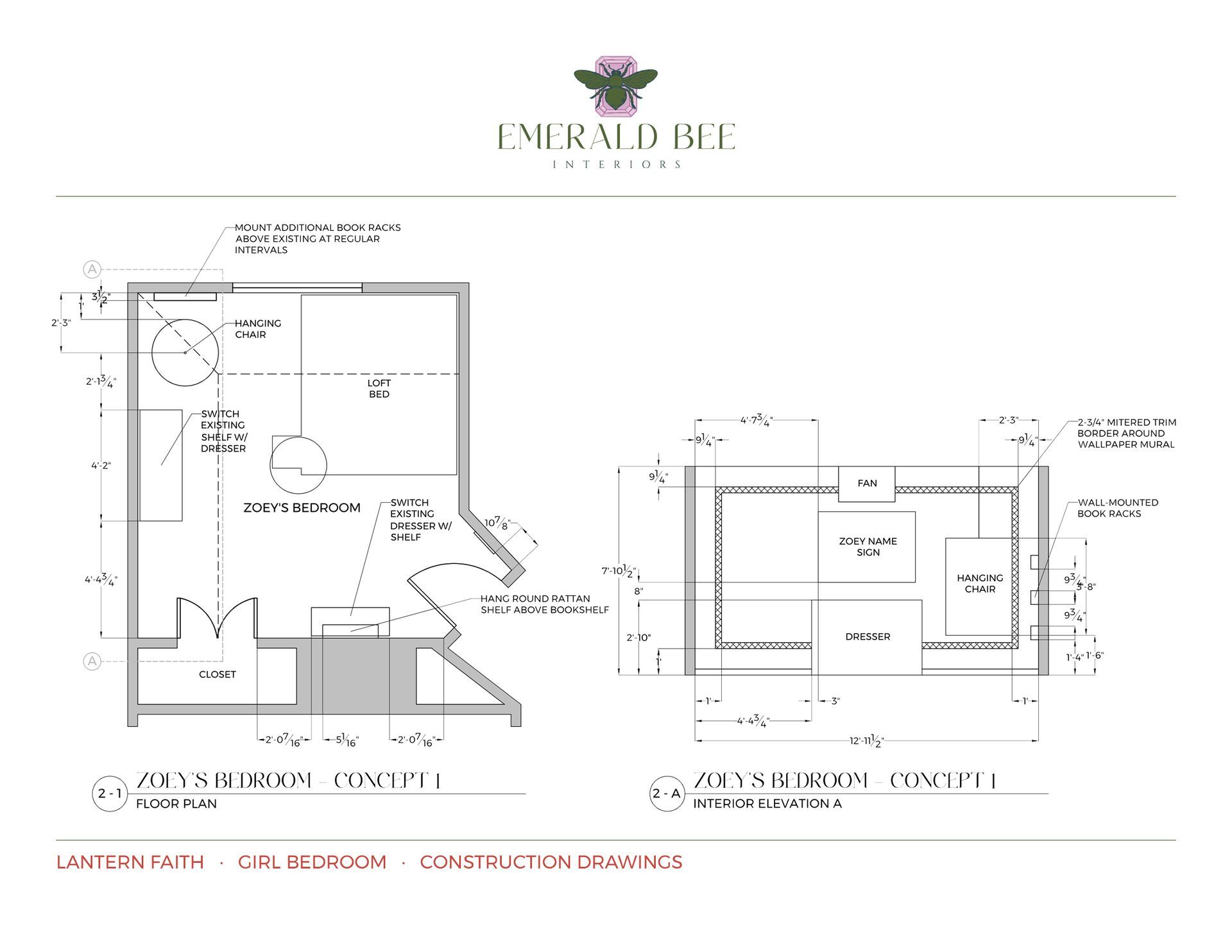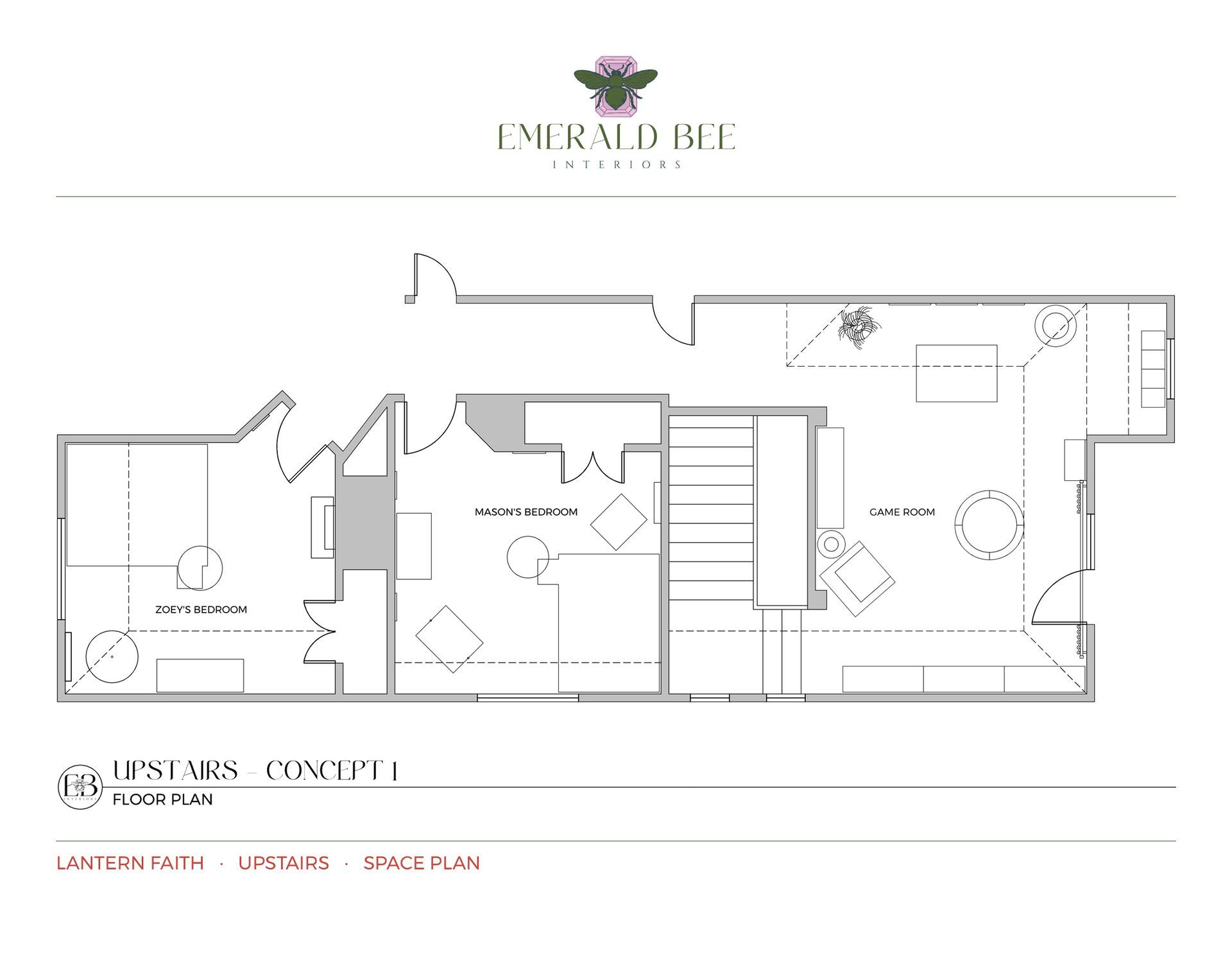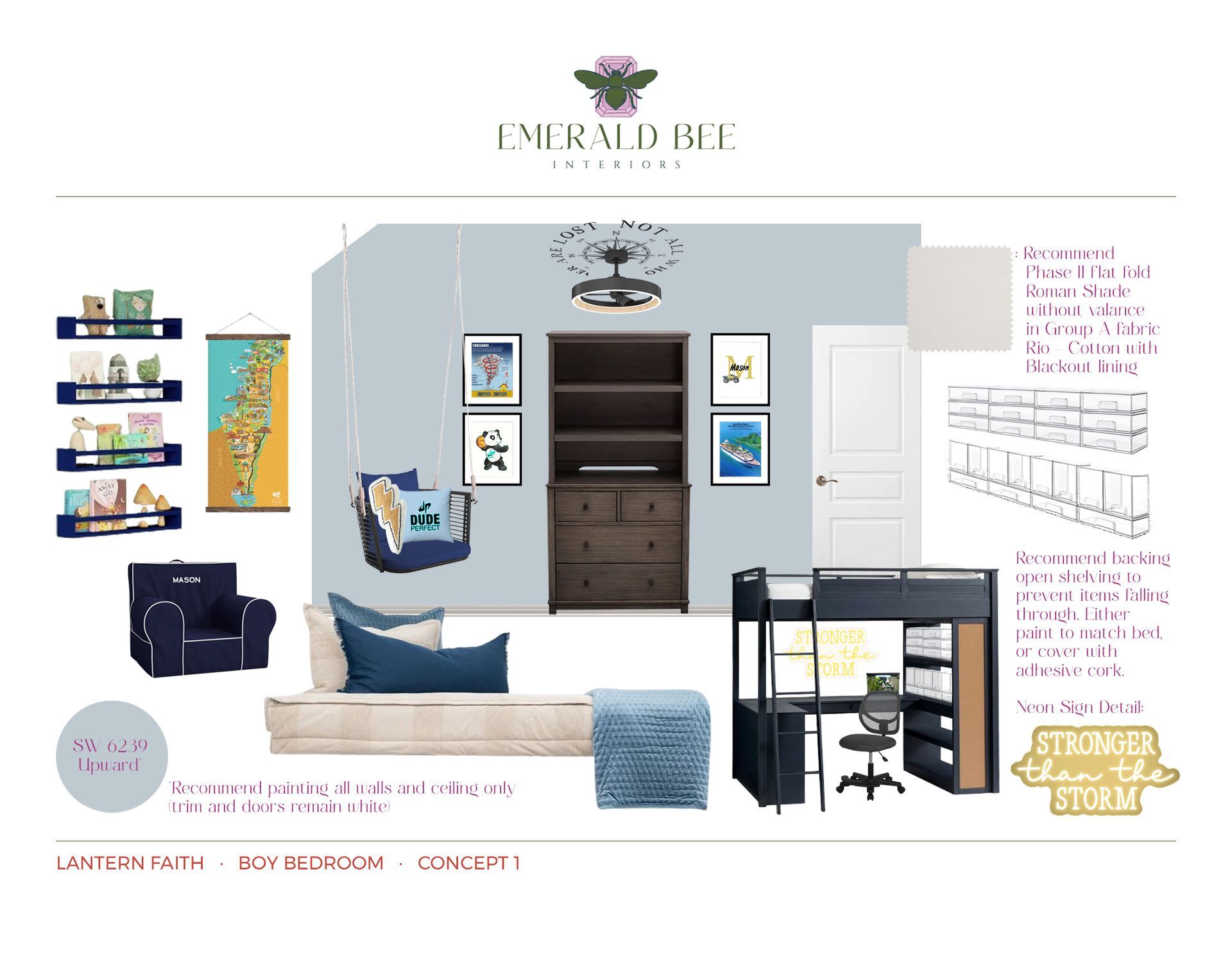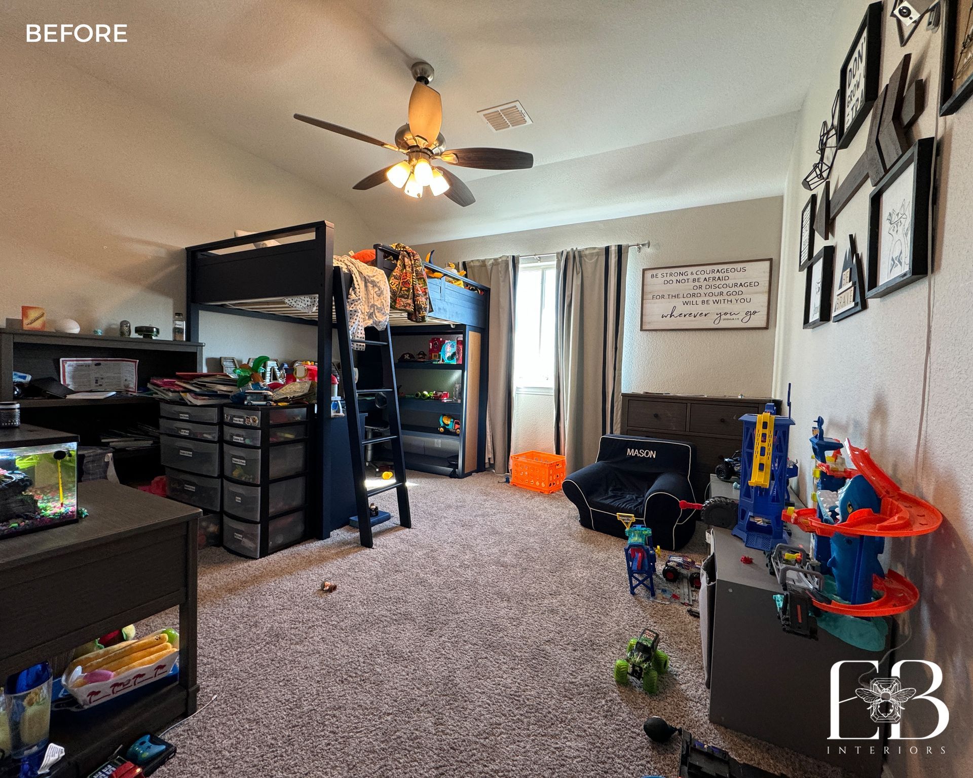 This design-only project for the Lantern Faith Residence centered on creating three distinct yet cohesive spaces—a daughter’s bedroom, a son’s bedroom, and a shared game room—all completed on a tight pre-holiday timeline. The children’s rooms were designed as a surprise Christmas gift, requiring efficient design decisions and thoughtful planning to achieve maximum impact within a limited window and budget. Emerald Bee Interiors later had the opportunity to return and professionally photograph the completed bedrooms, capturing how the designs translated from concept to reality.