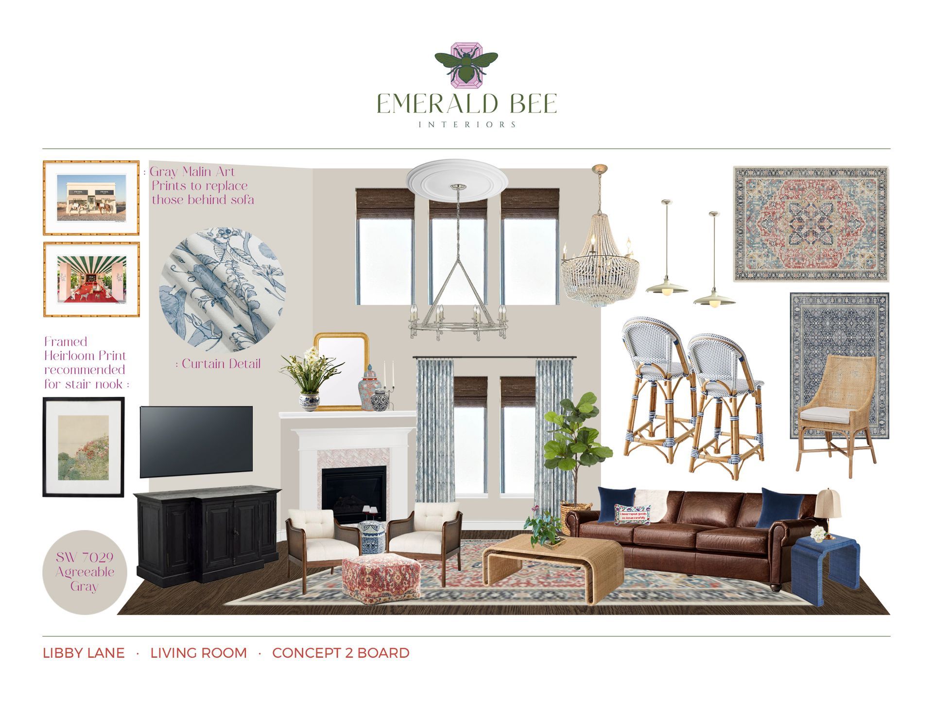 This project was completed through our Design-Only service, which provides clients with comprehensive design documents to implement at their own pace. Deliverables included a detailed concept board, curated furniture and finish selections with clickable sourcing links, and layout drawings to guide placement and installation.