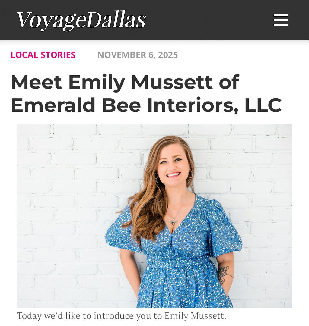 In this Inspiring Stories feature from VoyageDallas Magazine, Emily Mussett, founder of Emerald Bee Interiors, shares how she built a design practice that blends architectural precision with artistic creativity. With dual degrees in Architecture and Civil Engineering from Texas Tech University, Emily brings a rare balance of structure and style to every project—transforming everyday homes into spaces that feel both functional and inspired.