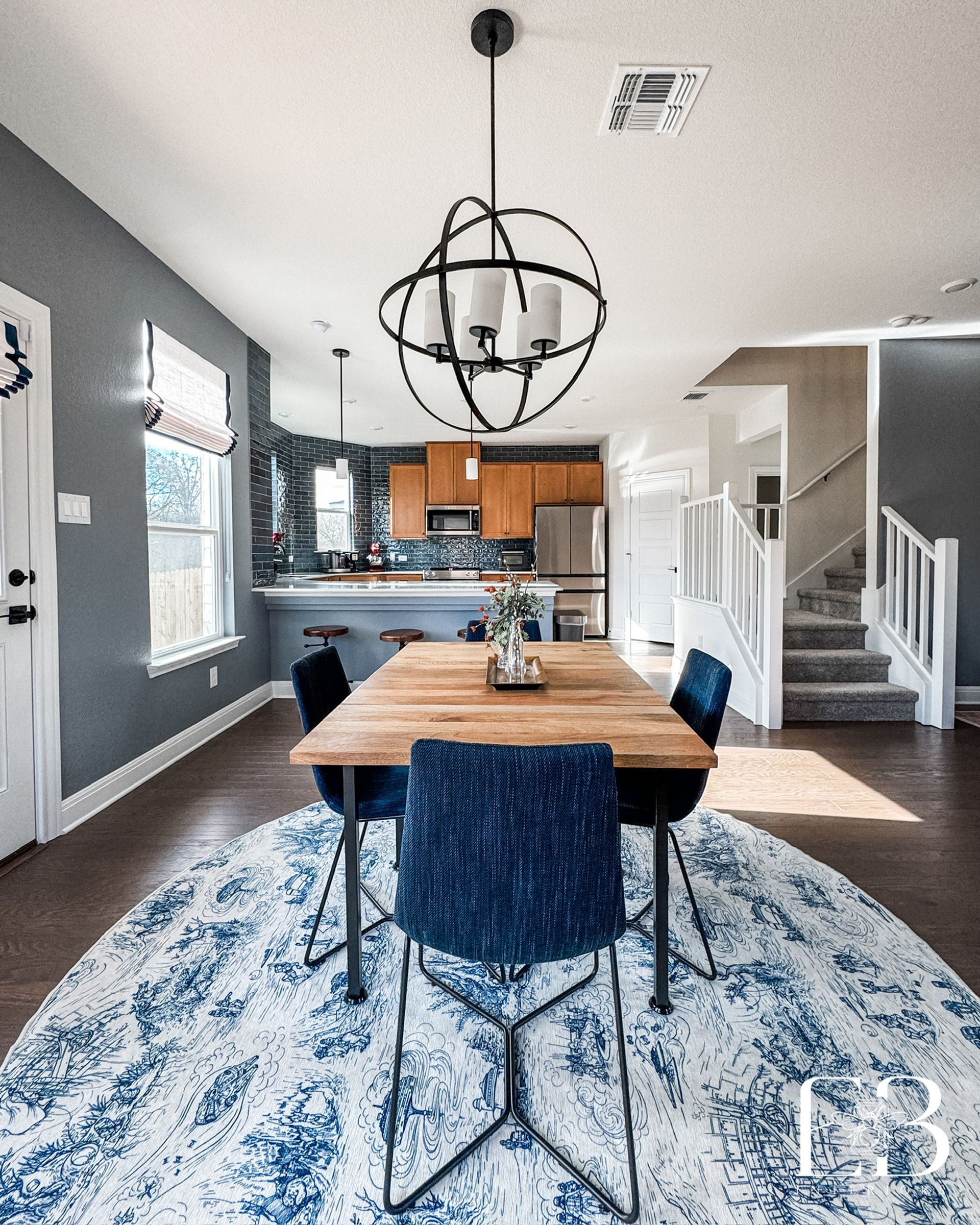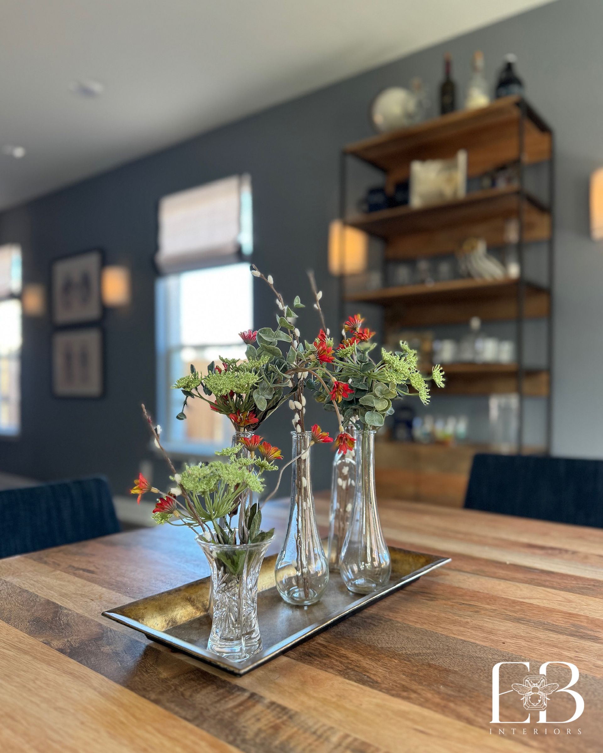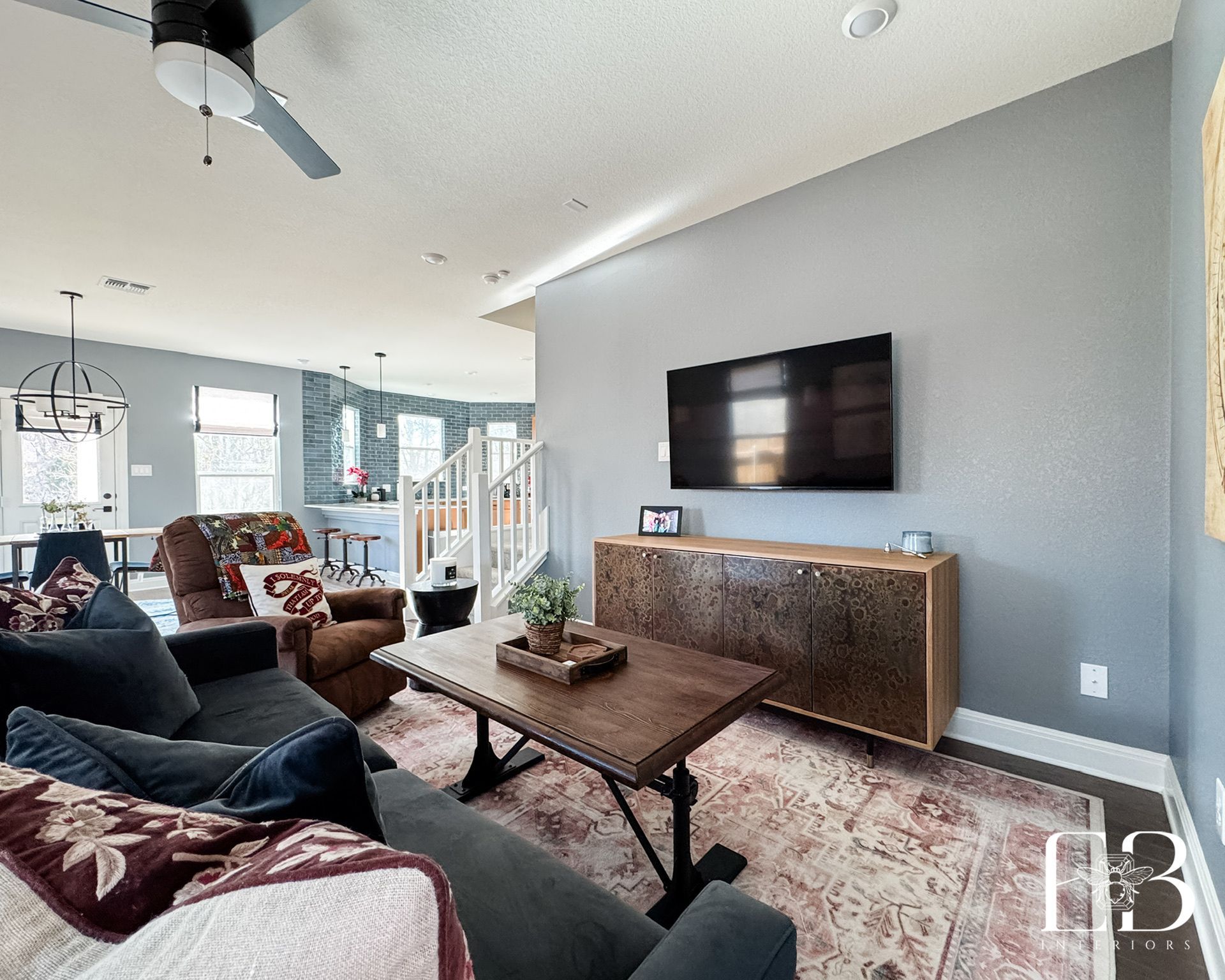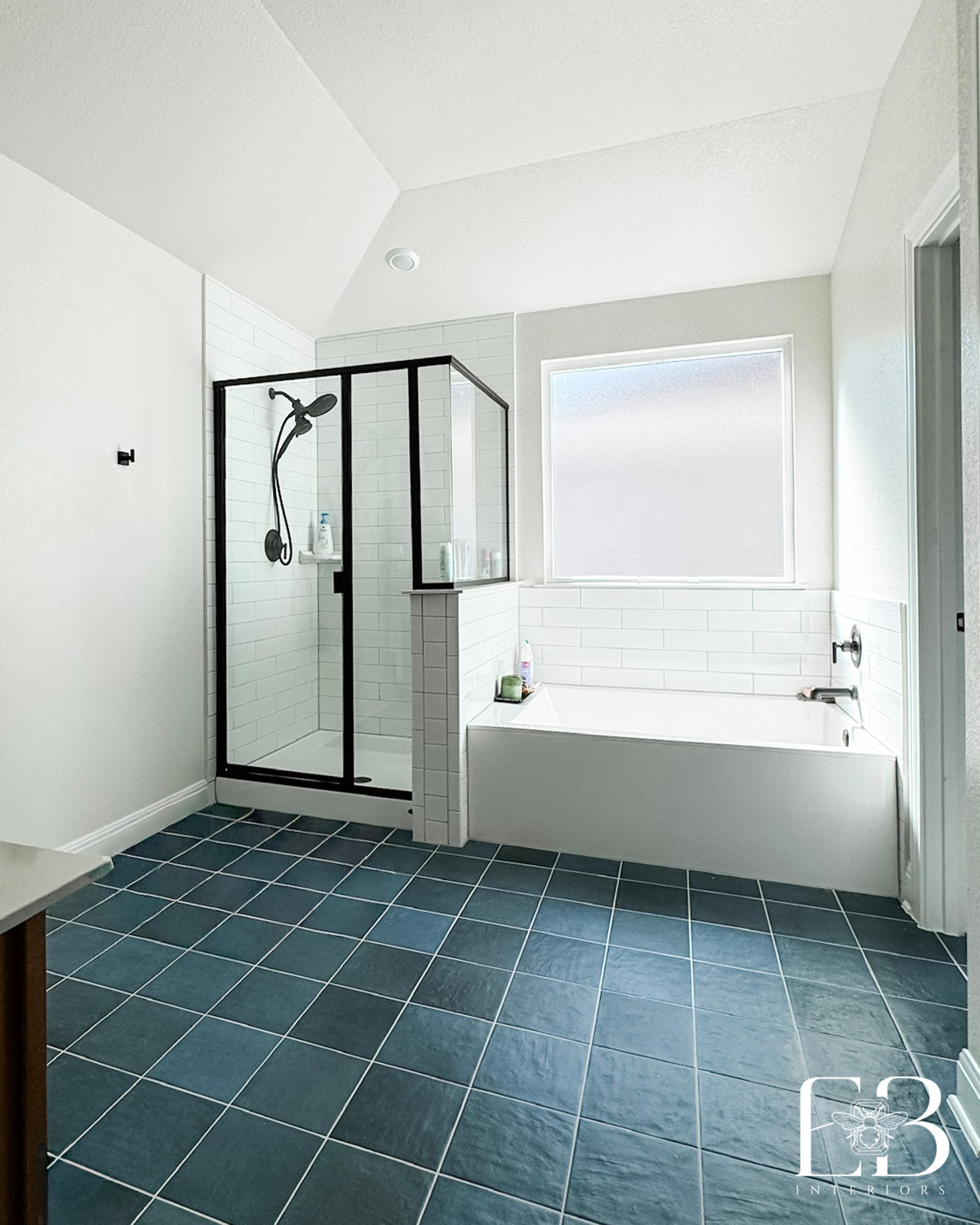Emerald Bee Interiors guided this client through the process of personalizing a new construction production build with K.B. Homes—from selecting the ideal floor plan and design options to attending the design center appointment to finalize all interior and exterior finishes. Custom concept boards and construction drawings were created to implement after-market upgrades, including full-height kitchen tile and custom paint applications that brought a dramatic, cohesive atmosphere to the home.