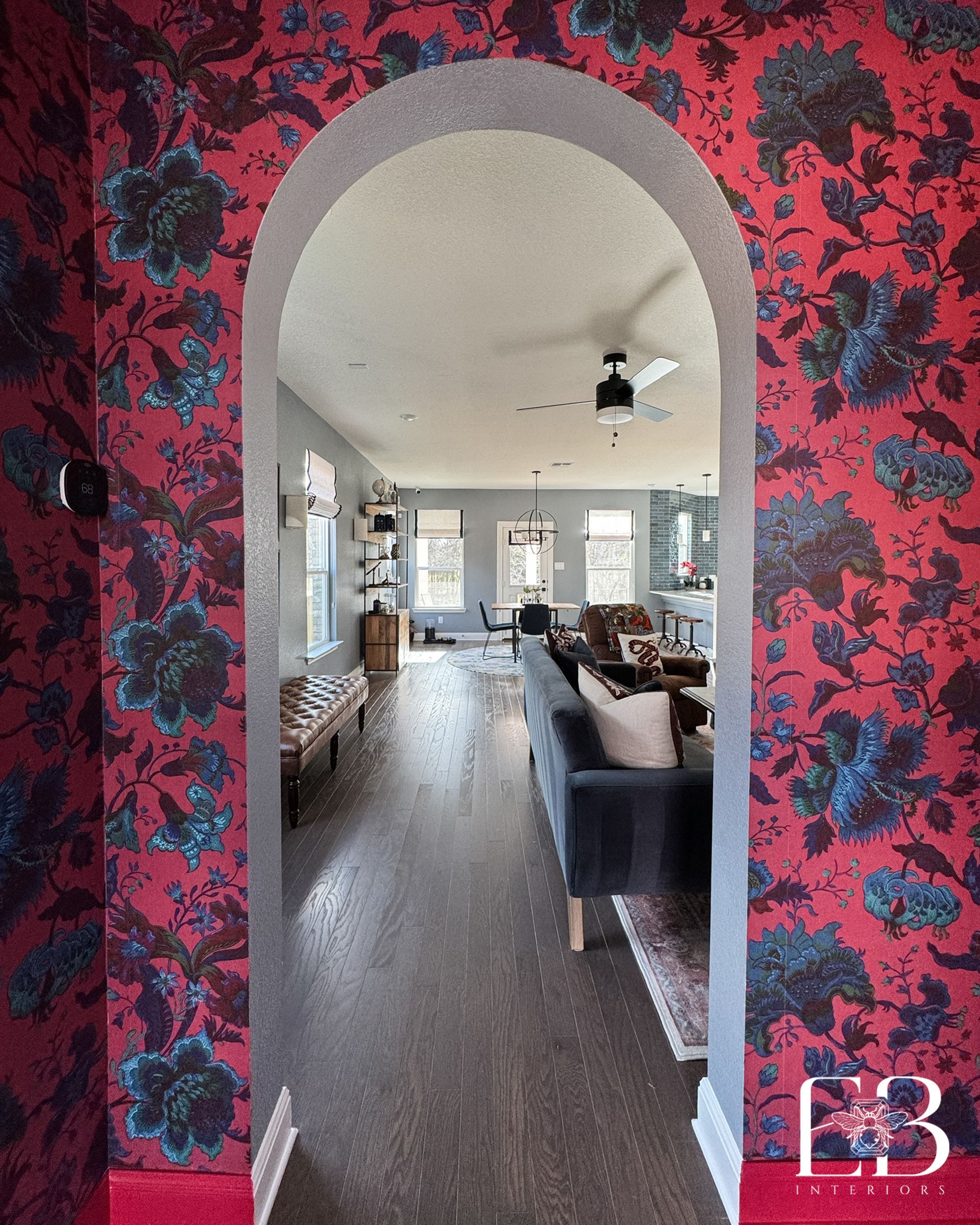 When construction was complete, Emerald Bee provided design guidance for an after-market contractor to close in the open entryway and add a rounded arch, visually drawing visitors from the foyer into the great room. This modification not only created a more defined living space but also introduced a natural corridor connecting the living room, dining area, and kitchen—enhancing both flow and character.