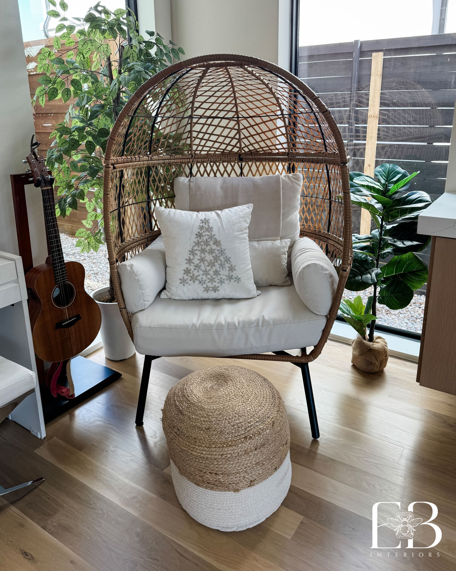 The client requested that designs emphasize accessible retailers that could provide affiliate links and gifted merchandise suitable for social media promotion. Multiple iterations were presented—over a dozen in total—for the primary bedroom to align with both the client’s evolving aesthetic and her husband’s preference for a less feminine palette. While the client ultimately chose not to move forward with purchasing through Emerald Bee, the design process established a clear stylistic direction for the home.