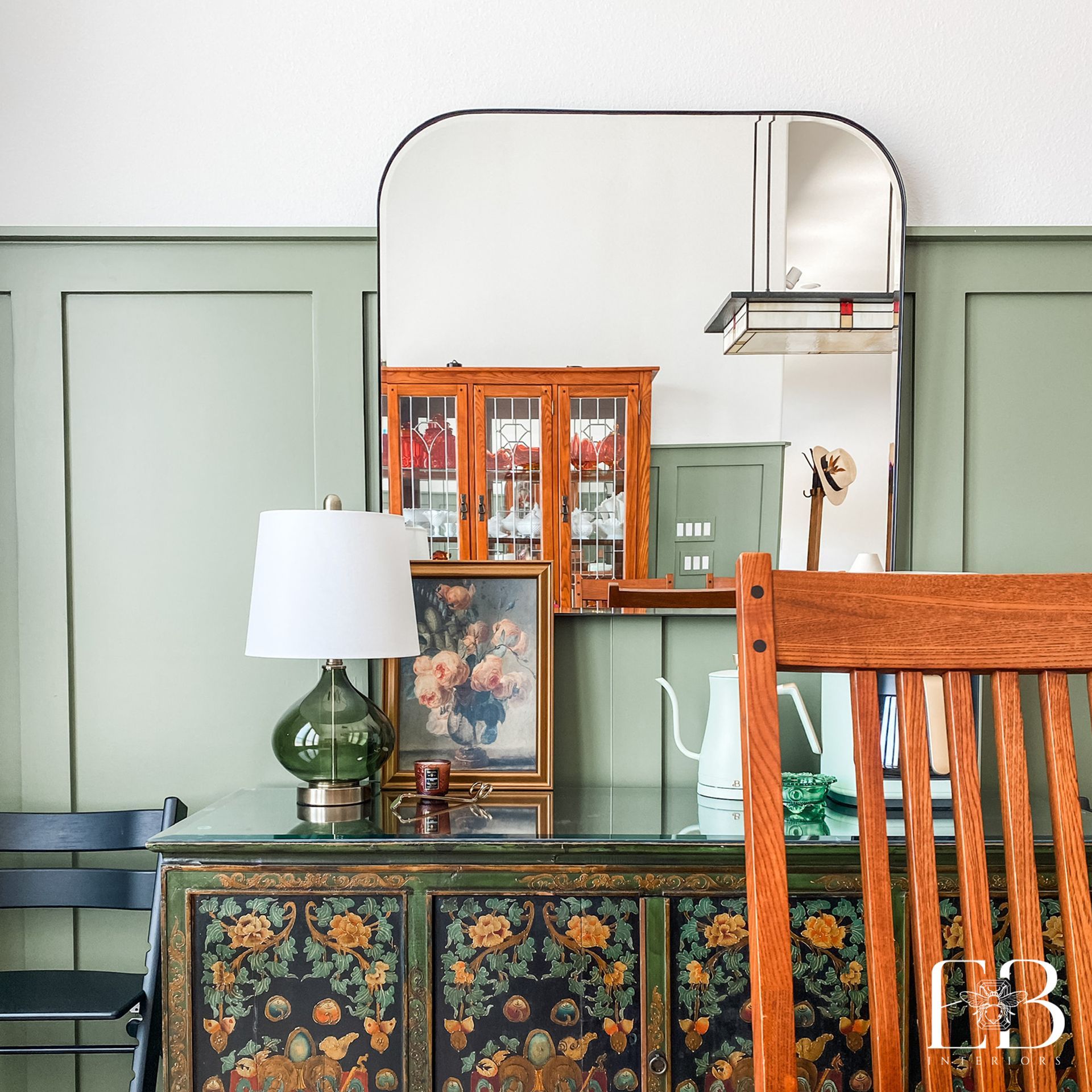 Emerald Bee Interiors also offers specialty services such as custom painting (including geometric wall designs and murals) and sewing for bespoke pillows, cushions, and draperies. Pricing is determined based on the scope and details of each project.