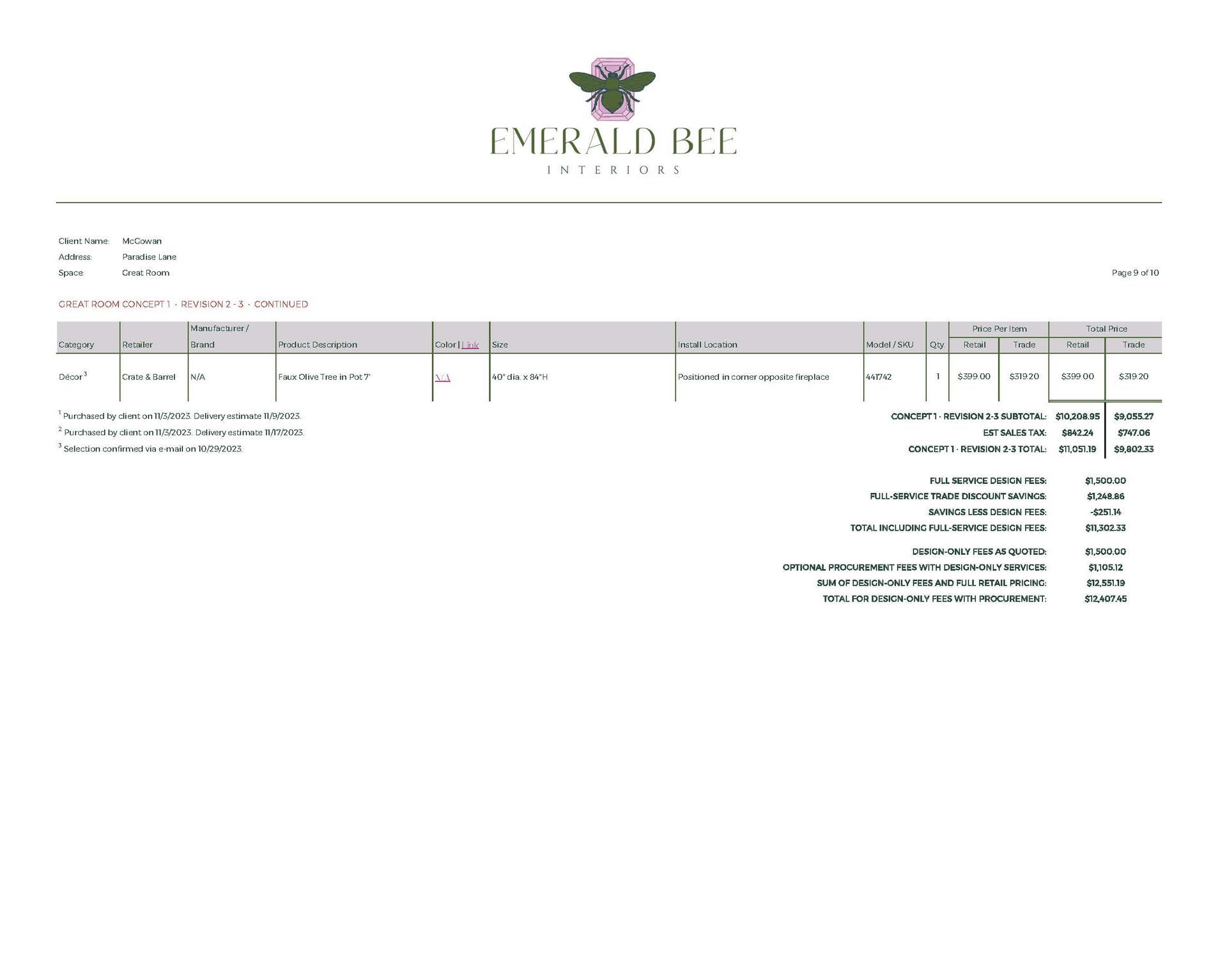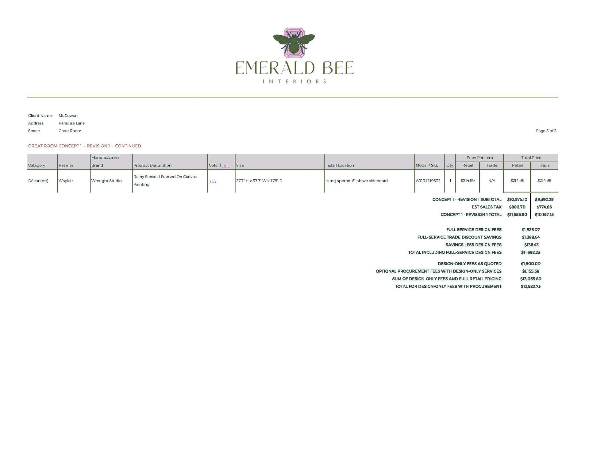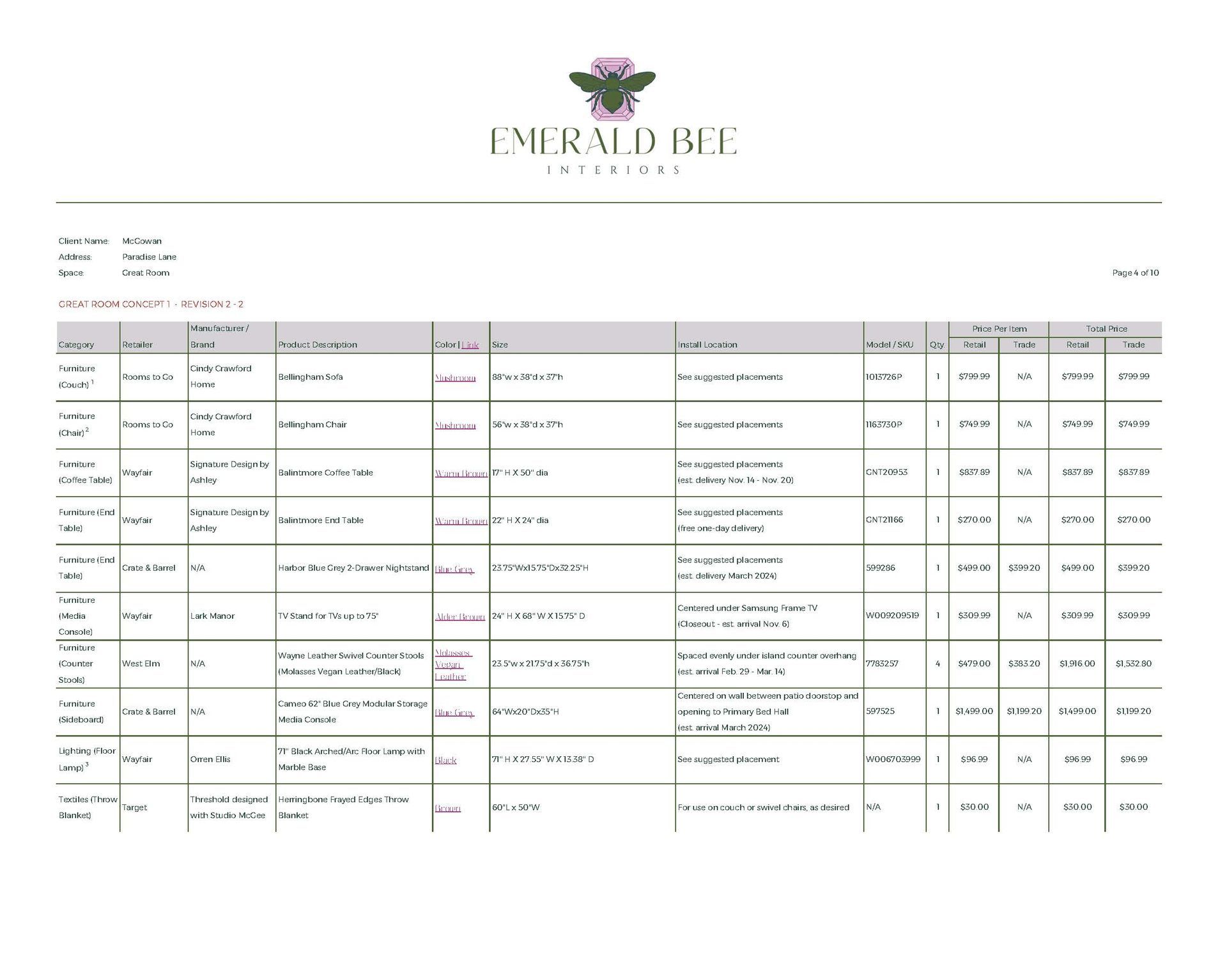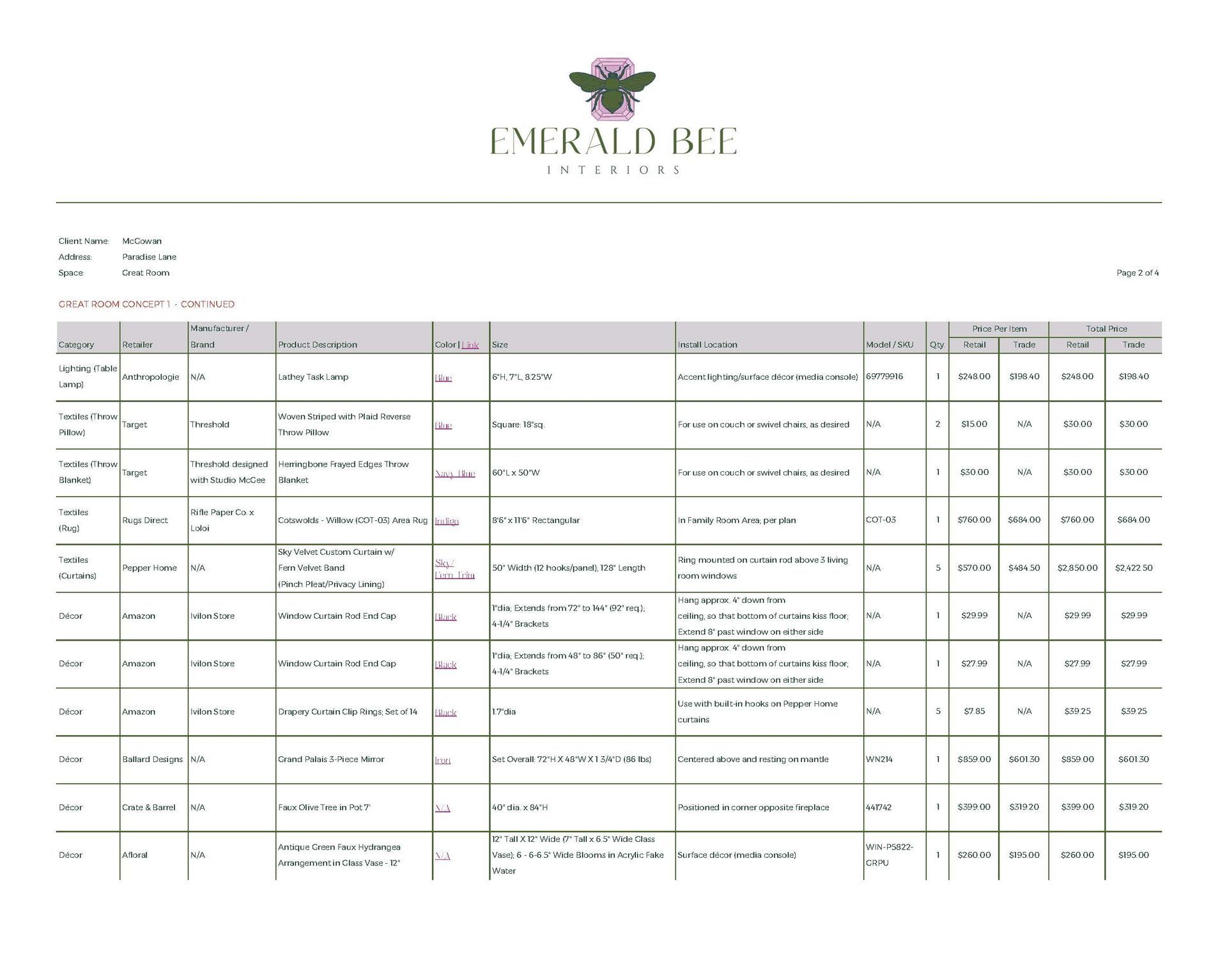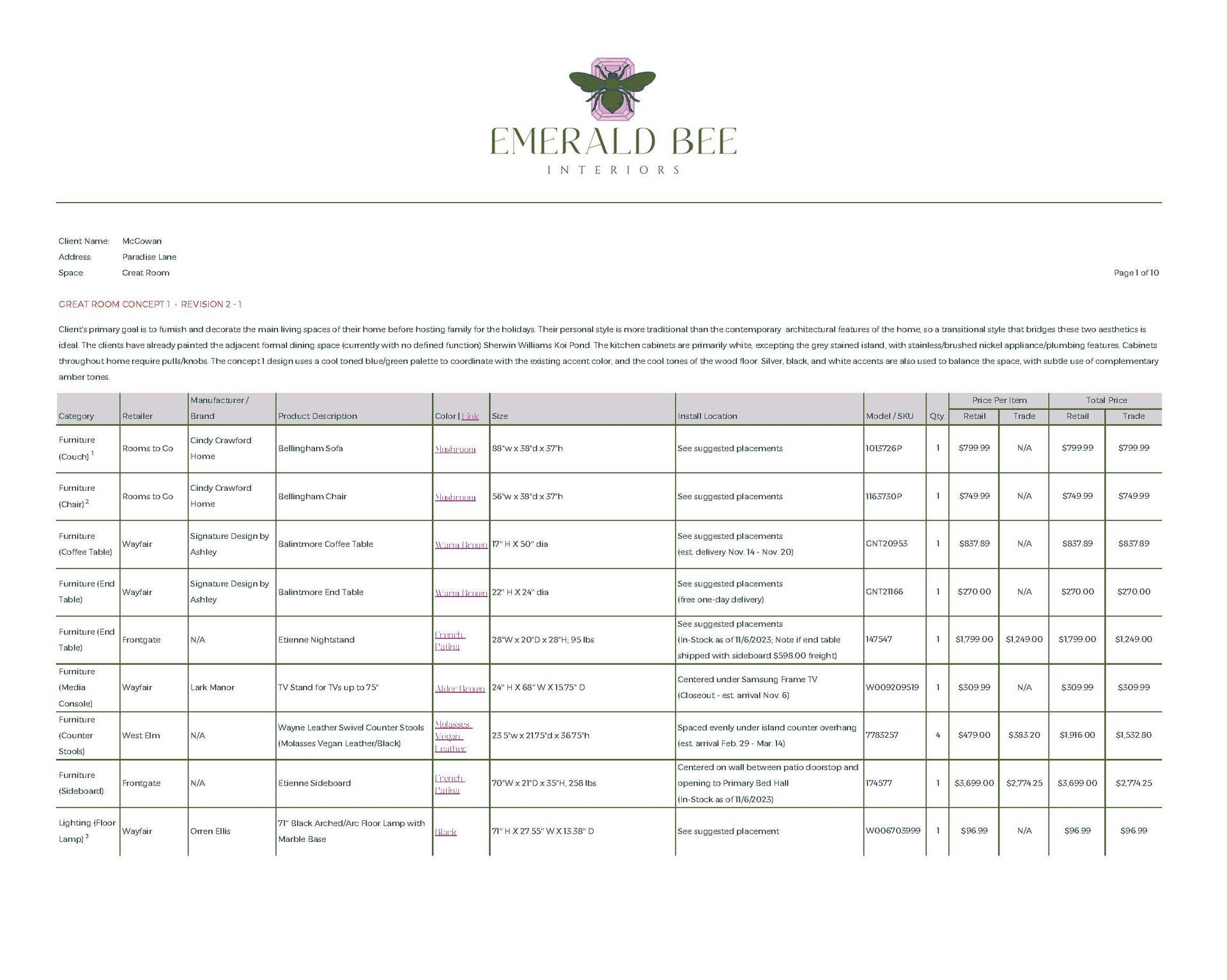 Concept Development, Furniture & Décor Sourcing, Space Planning (Multiple Options), Paint & Material Coordination, Procurement Assistance