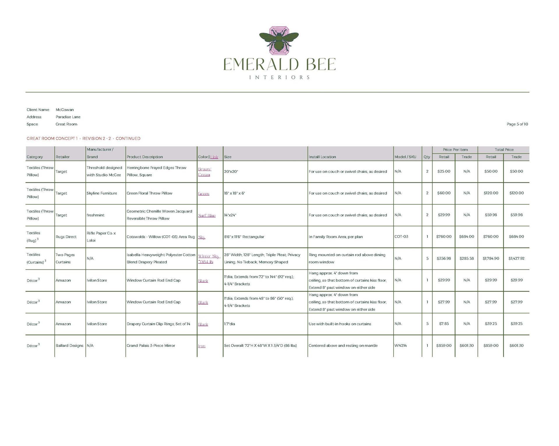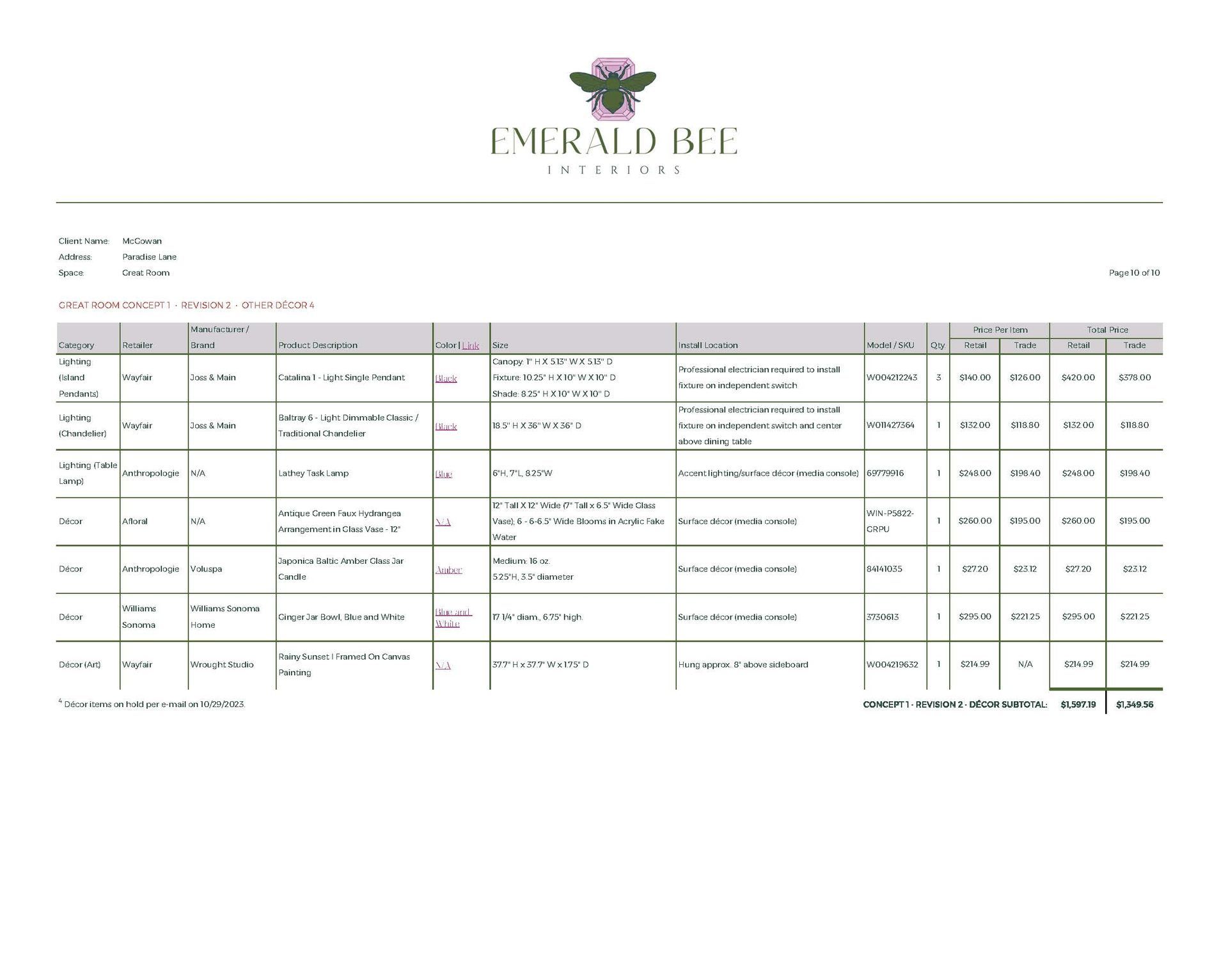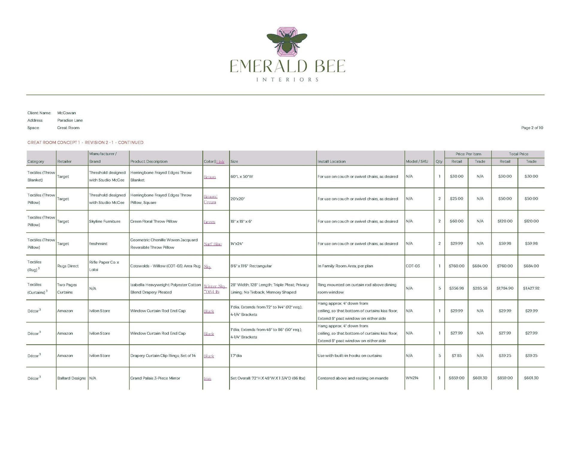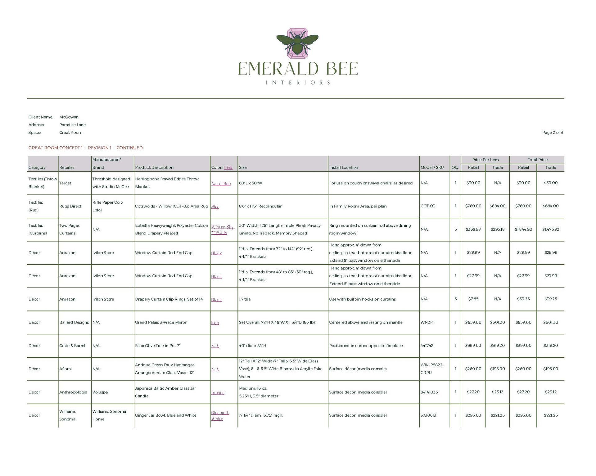 Concept Development, Furniture & Décor Sourcing, Space Planning (Multiple Options), Paint & Material Coordination, Procurement Assistance